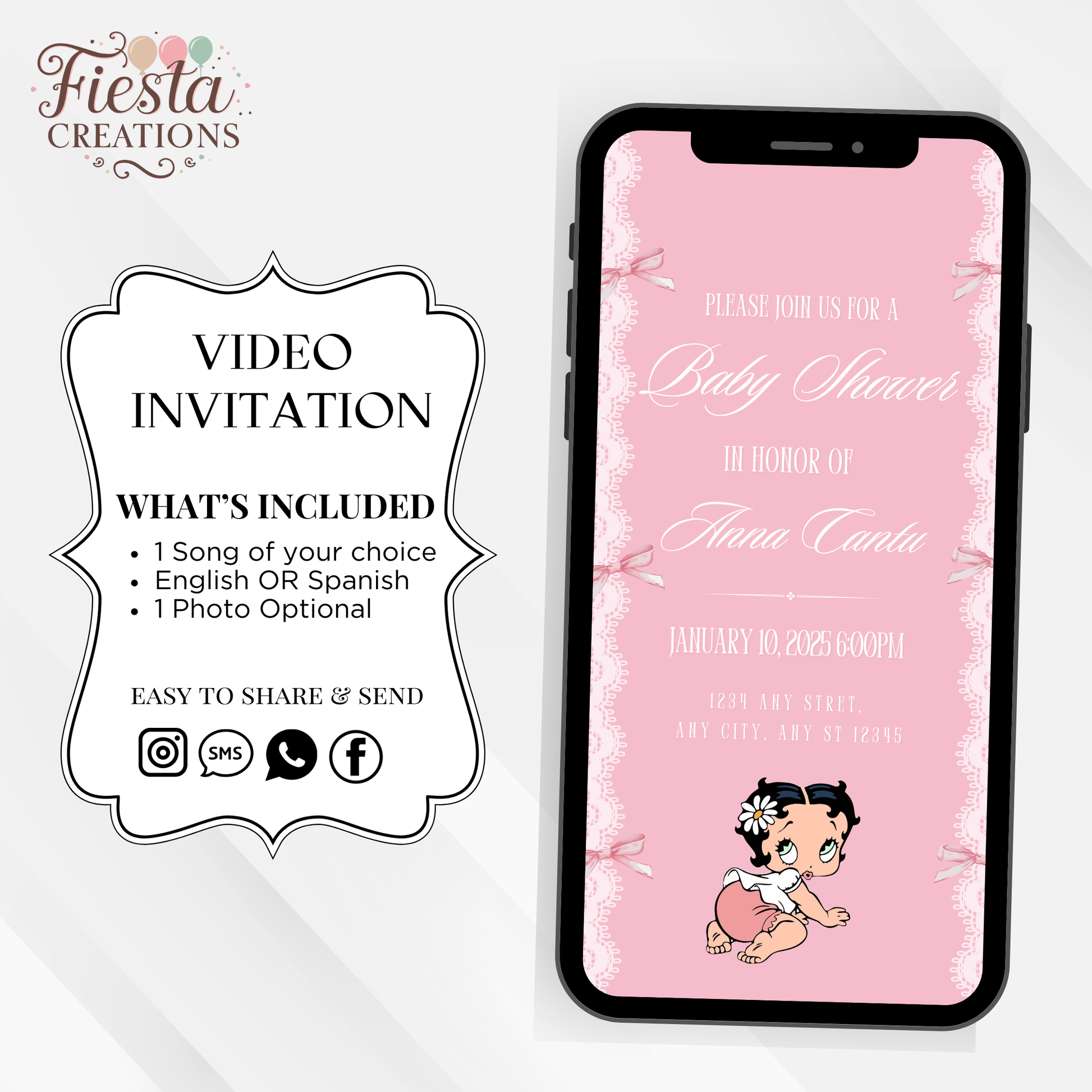 Coquette Betty Baby Shower Video Invitation