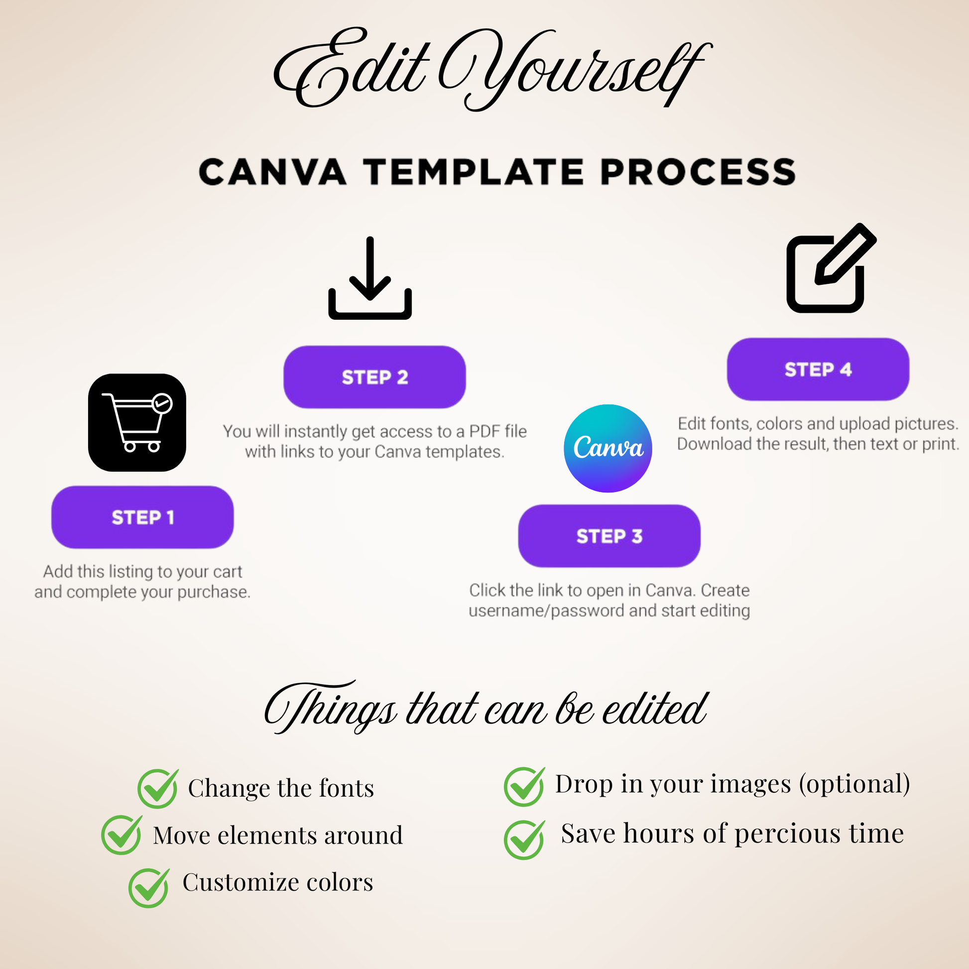 After purchase, you’ll get an email with a Canva link so you can easily edit your own invitation.