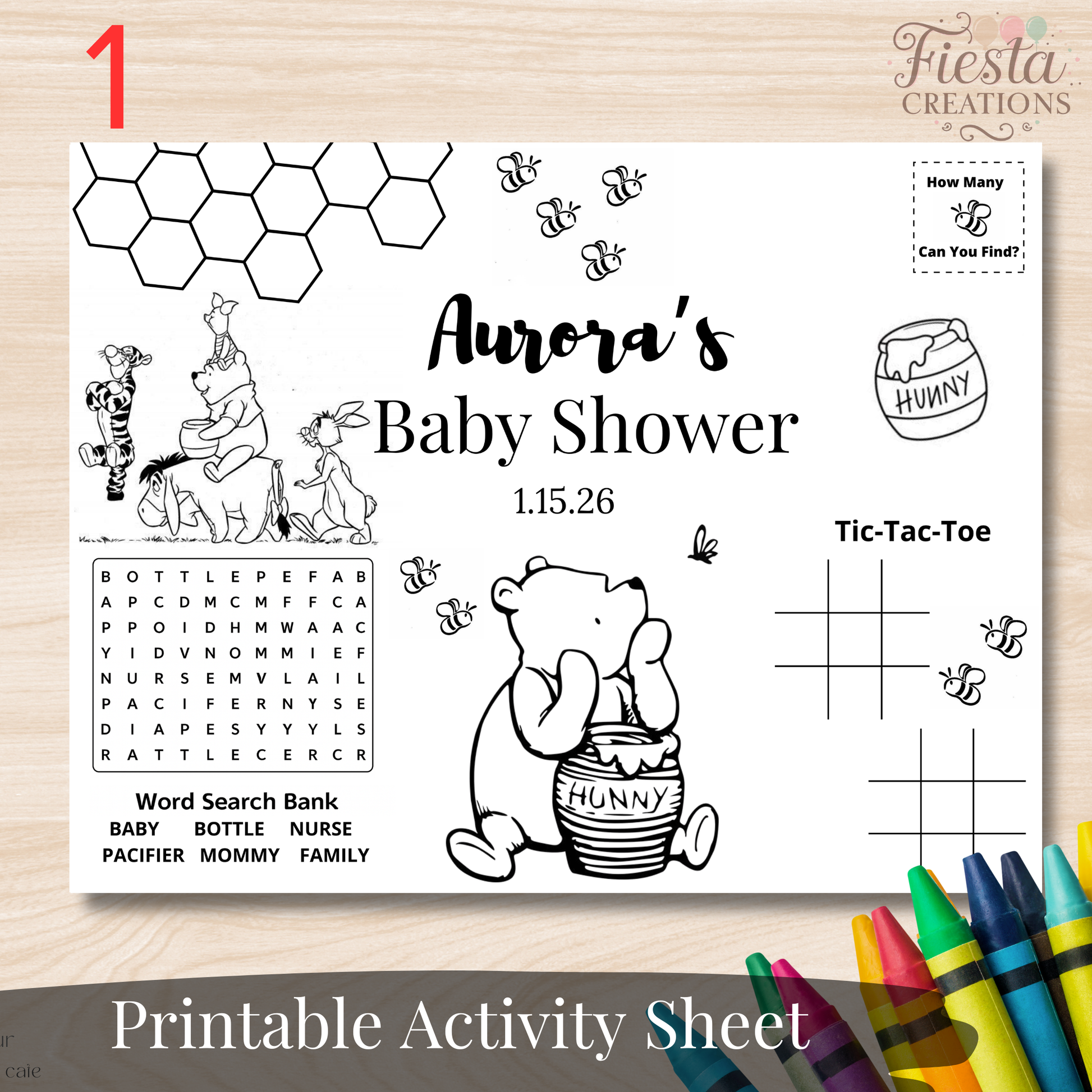 Winnie Baby Shower Activity Sheet